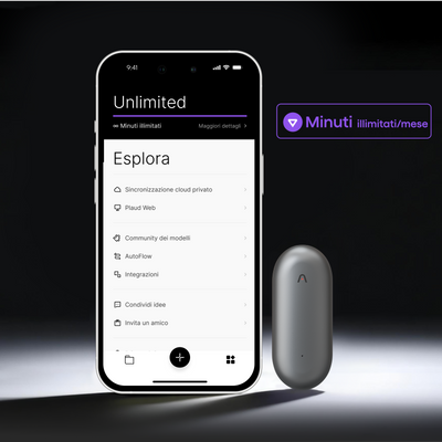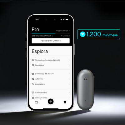 - Acquistane 1 e ottieni 3 regali gratis: Spilla magnetica, clip e 300 minuti/mese di trascrizione IA.