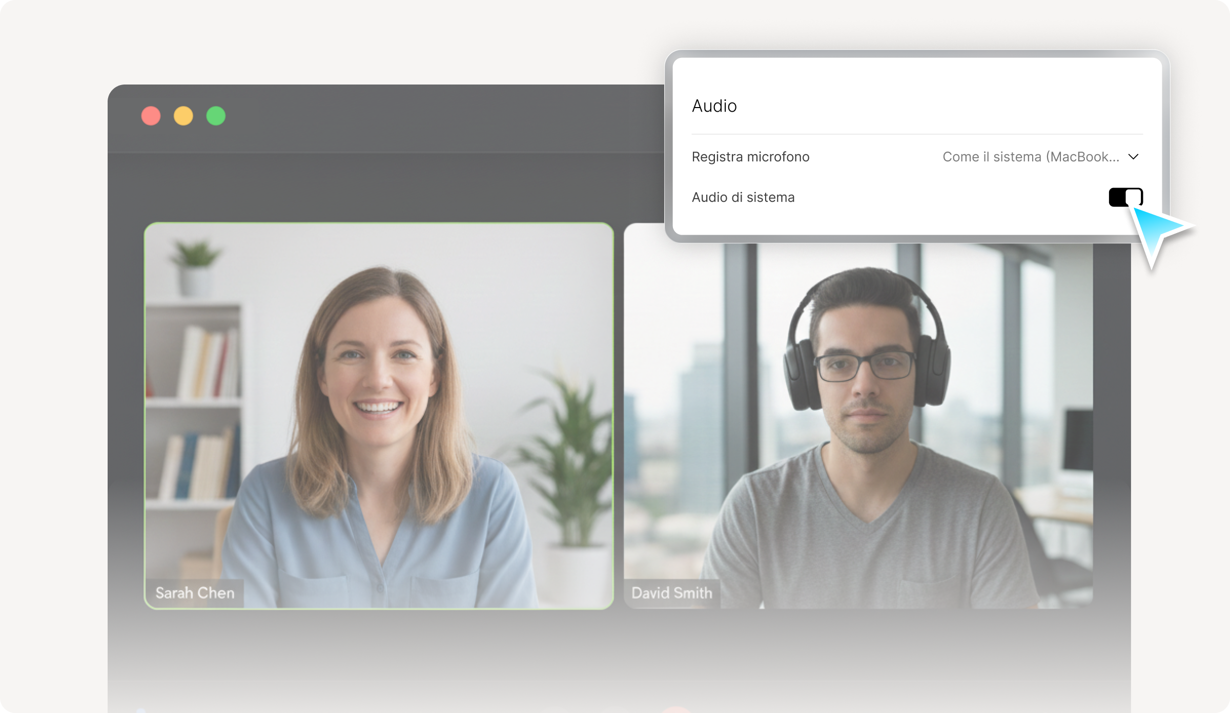 cattura l’audio direttamente dal tuo desktop, in modo discreto e affidabile.