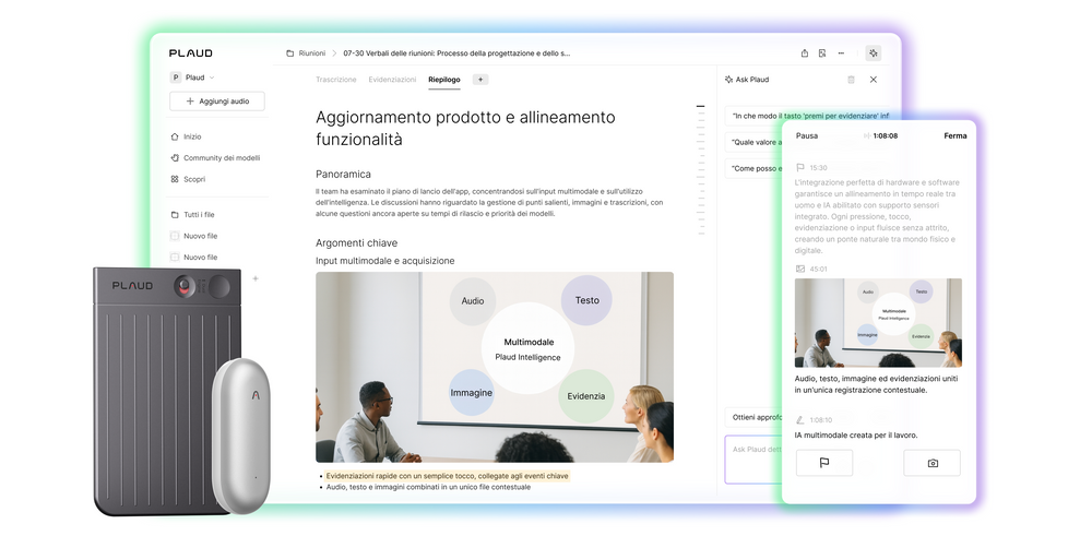 Plaud sta costruendo la nuova infrastruttura e interfaccia per catturare, estrarre e valorizzare ciò che dici, ascolti, vedi e pensi.