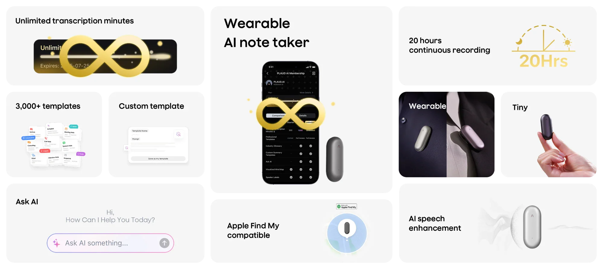 Plaud NotePin e 2 Piano Annuale Illimitato AI