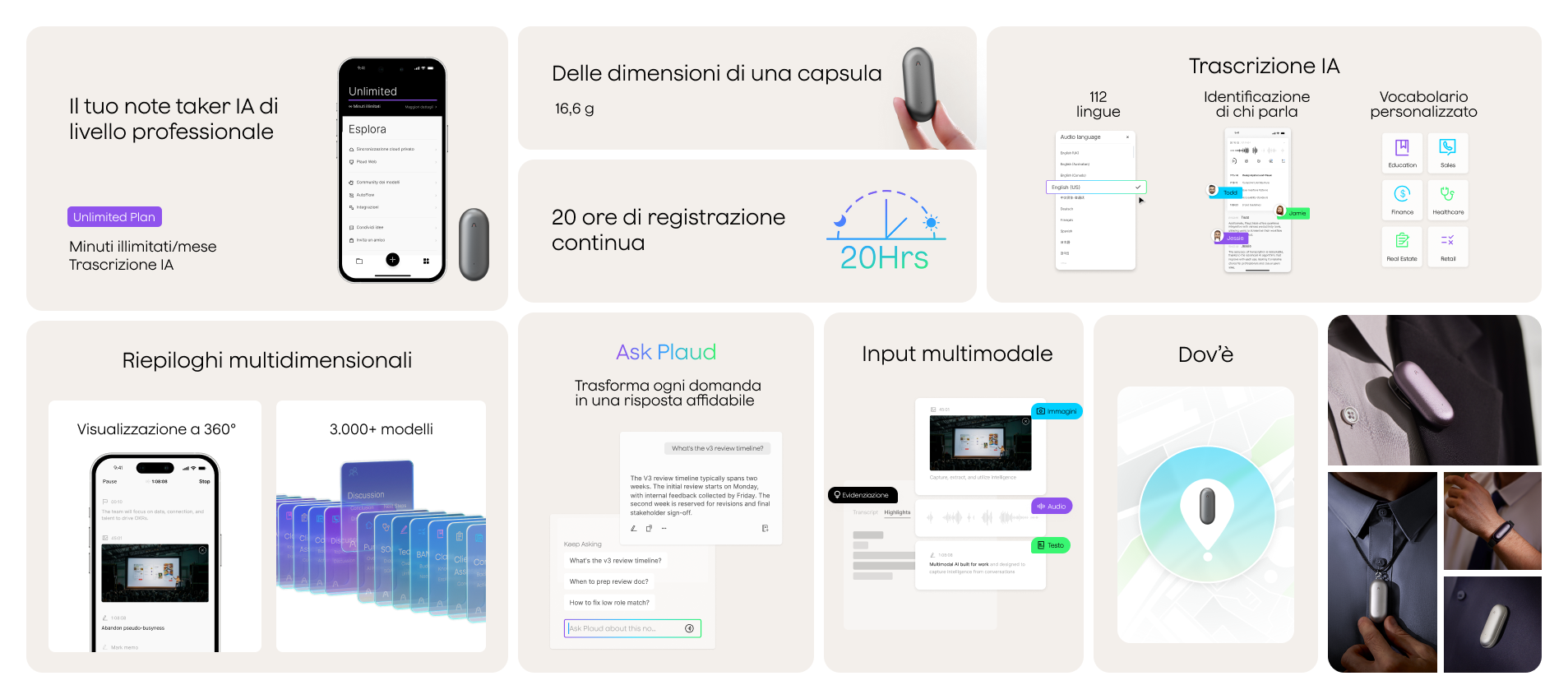 Con Plaud NotePin, ogni momento chiave viene segnato all’istante e segnalato all’IA, che capisce subito cosa è davvero importante per te.Un allineamento tra uomo e IA in tempo reale, con insight sempre precisi, utili e perfettamente in linea con le tue intenzioni.