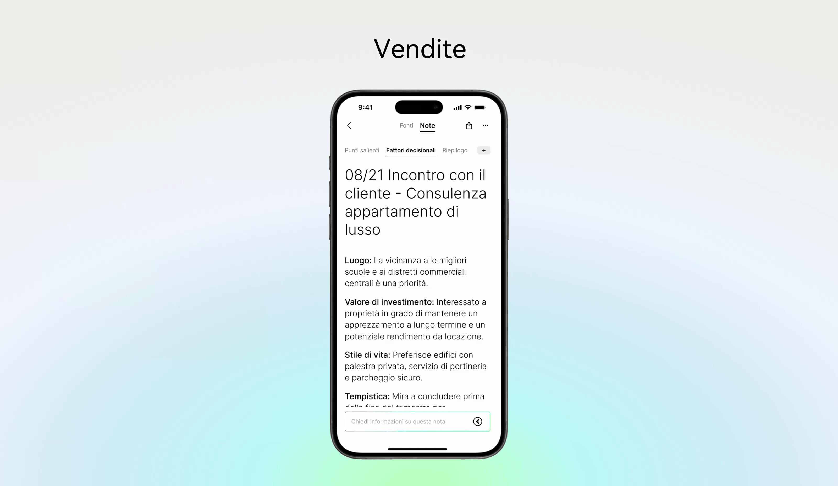 I dettagli fanno la differenza tra chiudere o meno un affare. Cattura ogni parola proferita dai tuoi clienti per soddisfare ogni loro richiesta.