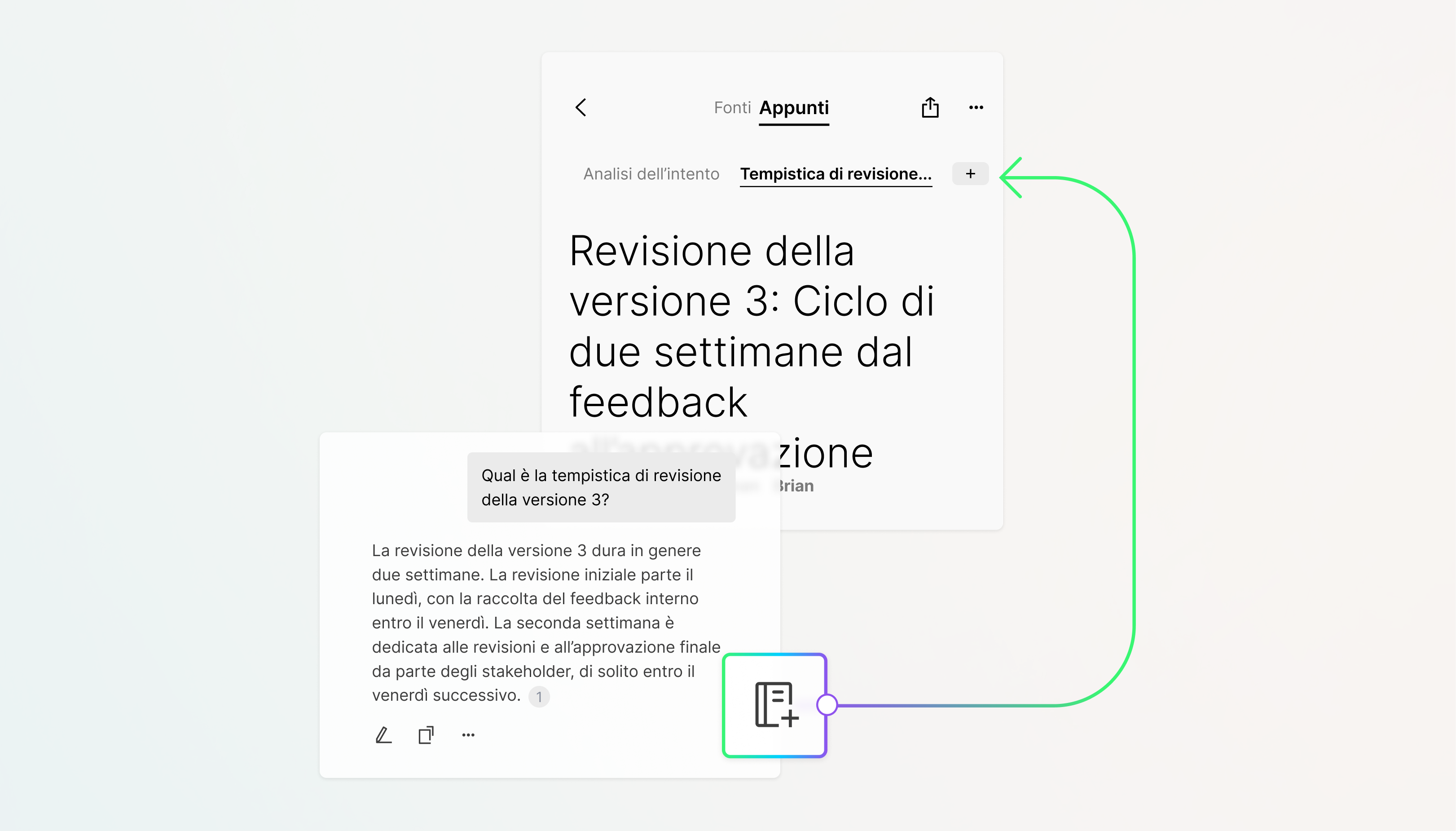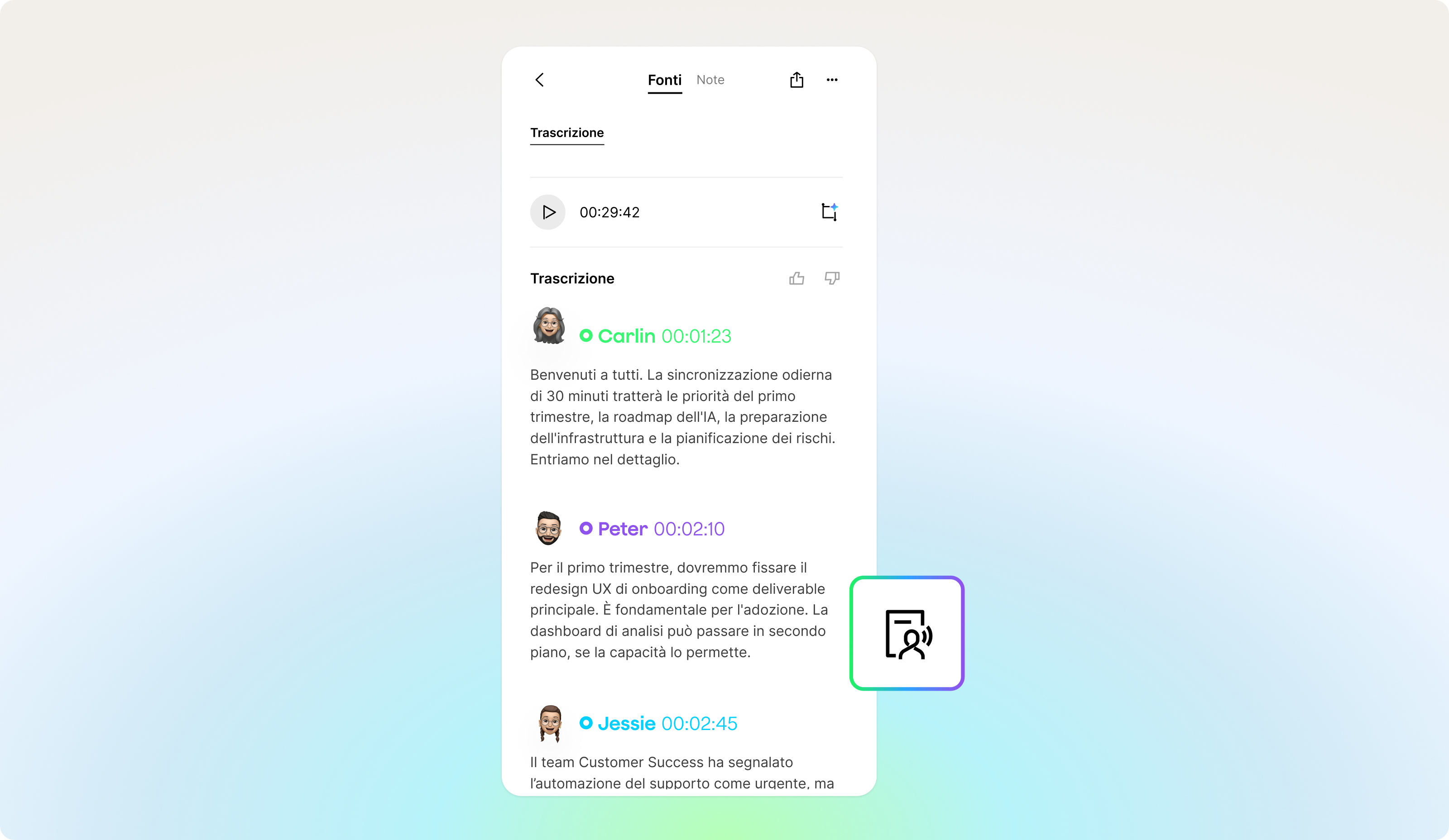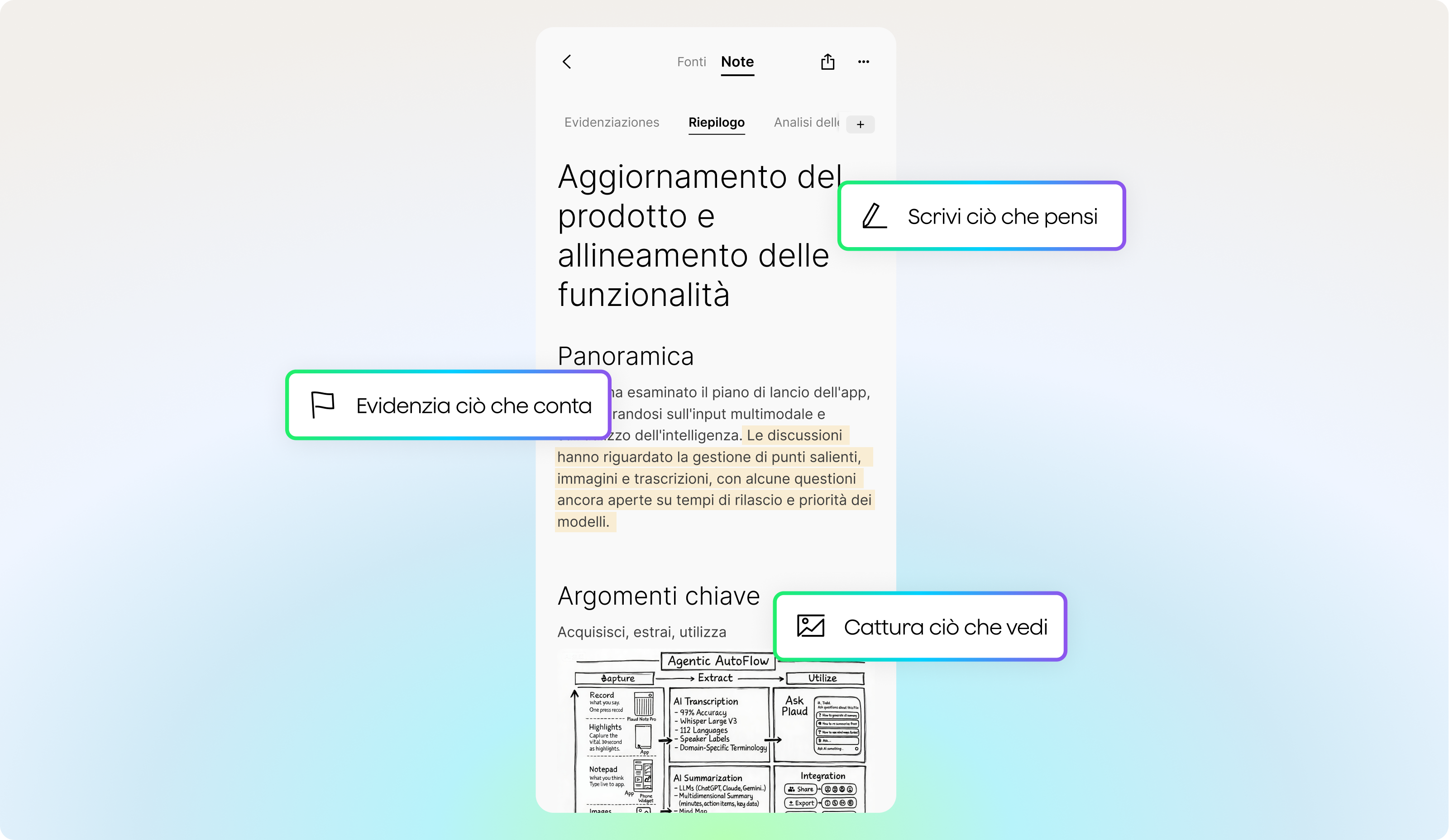 Ci occupiamo del lavoro di routine così puoi concentrarti sul lavoro creativo. Riepiloghi e approfondimenti basati sull’IA significano che abbiamo eliminato la parte noiosa da ogni lavoro.