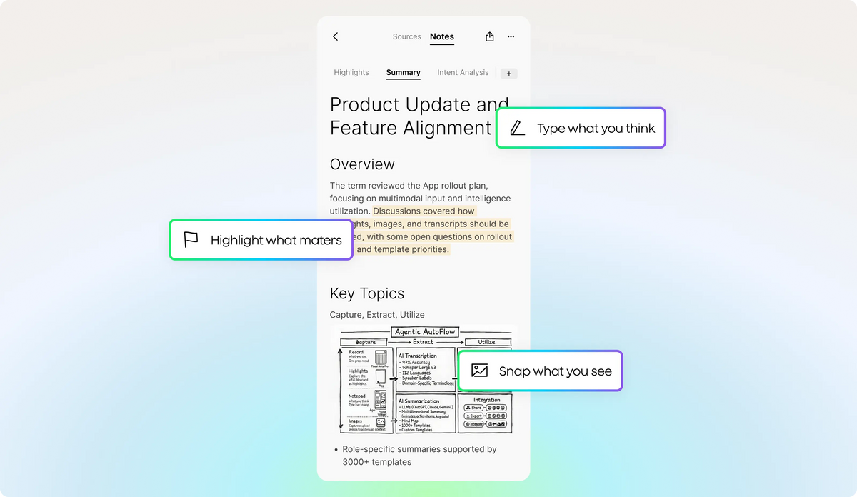 Ci occupiamo del lavoro di routine così puoi concentrarti sul lavoro creativo. Riepiloghi e approfondimenti basati sull’IA significano che abbiamo eliminato la parte noiosa da ogni lavoro.
